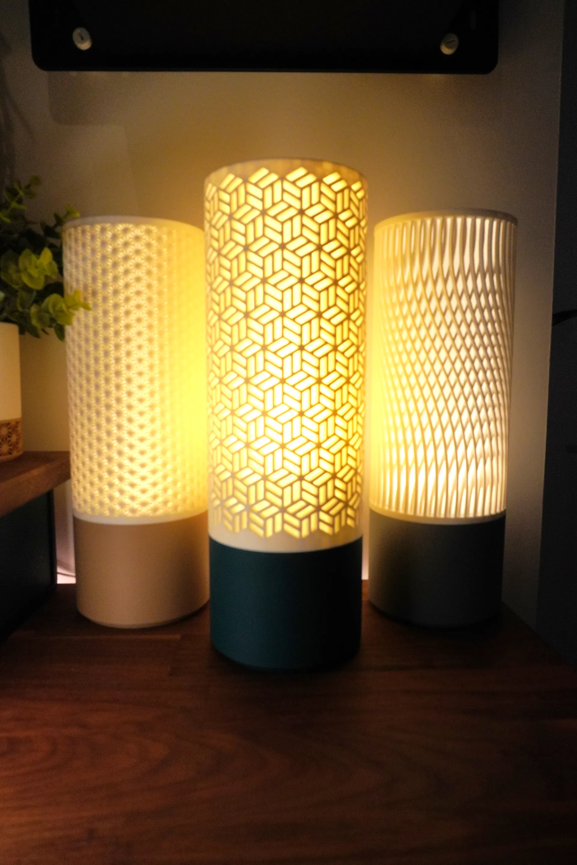 Pantallas impresas en 3D para portalámparas E27. Diseño liviano y uniforme.