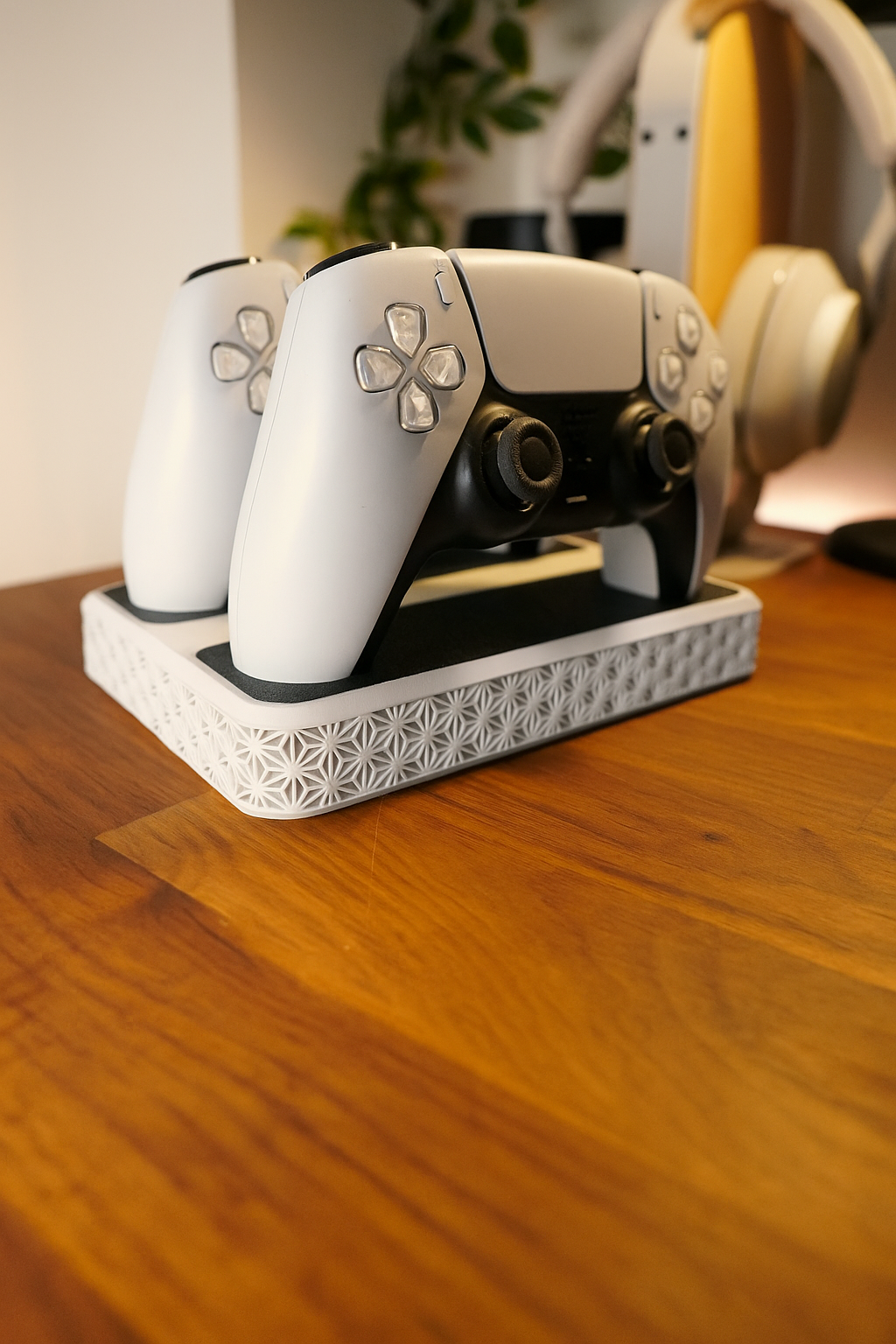 Soporte para mando PS5 con patrón lineal. Impresión 3D de alta calidad.